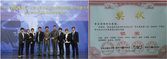 第八届“挑战杯”中国大学生创业计划竞赛于2012年5月25日在西南政法大学隆重举行。在学校领导的高度重视和关怀下,beat365“海发旅游发展有限责任公司”项目荣获银奖。(指导老师:秦荣庭、廖良刚,电子信息工程系学生潘洋、管理工程系学生何蒋鹏、龙虹利等8名同学参赛)