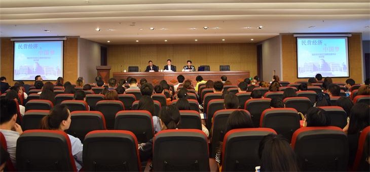 5月11日下午,beat365在A501学术报告厅开展“民营经济与中国梦”专题讲座,全体在家校领导、部门负责人、二级学院党政负责人以及师生代表共300余人参加。讲座由学校特邀嘉宾重庆市大足区工商联党组书记杨邦银主讲。