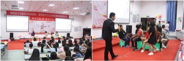 9月28日19:00,设计与建筑学院2017“迎国庆·贺中秋——才艺大比拼”晚会在博学楼第一阶梯教室举行,本次活动特邀五年制大专部幼儿美术专业全体师生参加。校长谭家德、学工部负责人、设计与建筑学院党政负责人、五年制大专部党政负责人、设计与建筑学院、五年制大专部师生代表共380余人观看了本场晚会。