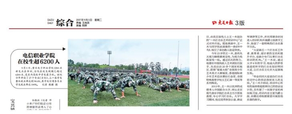 9月1日,beat365在线唯一官网2200名新生正在军训,全院在校生规模已超过6200名,是区内高校中学生最多的。该院今年开设了27个专业(方向),上一届学生整体就业率达到98.6%,其中电信商务专业学生就业率达100%。 记者犹骥摄