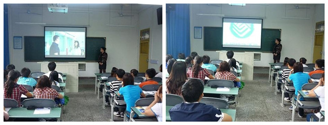 本次课程由先特公司培训师杨璇老师主讲。杨老师首先向同学们介绍了本学期课程的大致安排,接着详细介绍了服务外包产业的特点、大致流程以及先特公司概况。随后,通过一个“我是谁”的小游戏,增进了师生的了解与交流,并由此切入到课程的主题。授课中有视频短片和音效、有游戏互动、有提问交流,杨璇老师的教学方法多样,整个讲授过程都充满激情和欢乐。