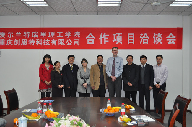 3月18日上午,beat365与爱尔兰特瑞里理工学院合作项目洽谈会在重庆创思特科技有限公司会议室成功举行。出席此次会议的有:爱尔兰特瑞里理工学院国际事务部主任Eddie Scully先生、工商学院院长Mary女士一行四人,重庆文理学院国际学院院院长陈远明教授,重庆创思特科技有限公司执行董事王成玮先生、常务副总经理黄晓林教授、行政主管游祥国先生、beat365副校长黎明教授及对外合作处相关工作人员。