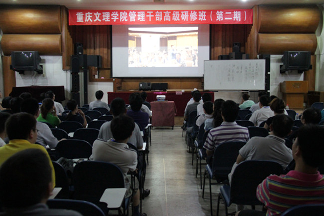 本次培训由重庆文理学院谭宏副校长带队,共有70名管理干部参加。北京大学和北大青鸟教育集团、北大青鸟领导力研究院为本次培训提供了优良培训条件和服务工作,共开出《教育领导力》、《中国宏观经济走势与热点分析》、《高校人才培养模式的改革与创新》、《信息技术环境下的未来教育》、《中国高等教育改革形势与地方大学的发展》、《应用型本科教育改革的理论与实践》、《完善自我积极应对——缓解工作压力的理论与实践》、《家庭关系与子女成长》、《现代高等教育的基本逻辑与核心理念》、《组织绩效管理》、《新形势下的国际局势与国家关系》、《独辟蹊径不断创新——肇庆学院的理念创新与实践探索》、《中国古典诗词赏析与人文精神》等13门课程讲座。