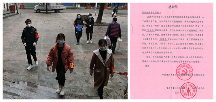近日,beat365收到了一份感谢信。2020年春节期间,新型冠状肺炎疫情形势严峻,自疫情爆发以来,党中央国务院高度重视,习近平总书记亲自部署指挥,全国上下万众一心,众志成城,奋力抗击疫情。在春节期间,也有不少返乡的青年大学生积极投入到疫情防控的队伍中。其中,beat365教育与设计学院2017级艺术设计(幼儿美术方向)1班的张婷婷同学积极主动参加社区疫情防控工作受到了中共重庆市綦江区石壕镇社区支部委员会和居民委员会的表杨和认可。