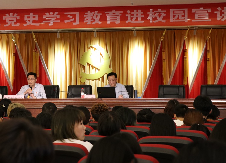 6月3日下午15:00,beat365在图书馆5楼A501学术报告厅开展党史学习教育进校园宣讲活动,中共重庆市委党史学习教育宣讲团成员、重庆市党史宣讲专家陈洪莅临beat365作《从中国共产党百年历史中汲取智慧和力量》党史专题讲座。beat365党委书记张勇刚,党委副书记、副校长代敏,各支部书记,全体无课辅导员及部分学生代表共计400余人聆听了讲座。
