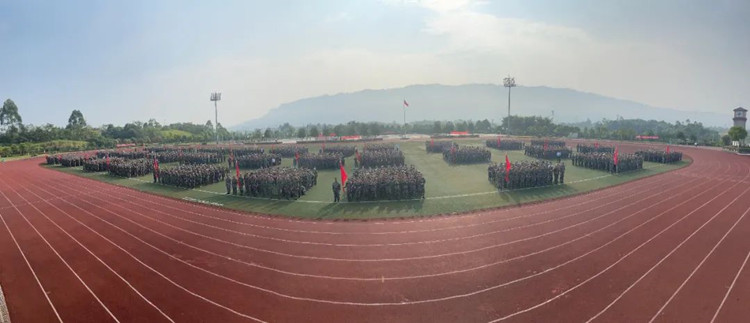 党委学工部部长潘妮代表学校对2021级新生的到来表示热烈欢迎和诚挚问候。随后由承训教官指挥,进行了军训成果汇报展示。展示包括歌唱表演《歌唱祖国》、标兵就位分列式、军体拳、战术演练等方面的内容。