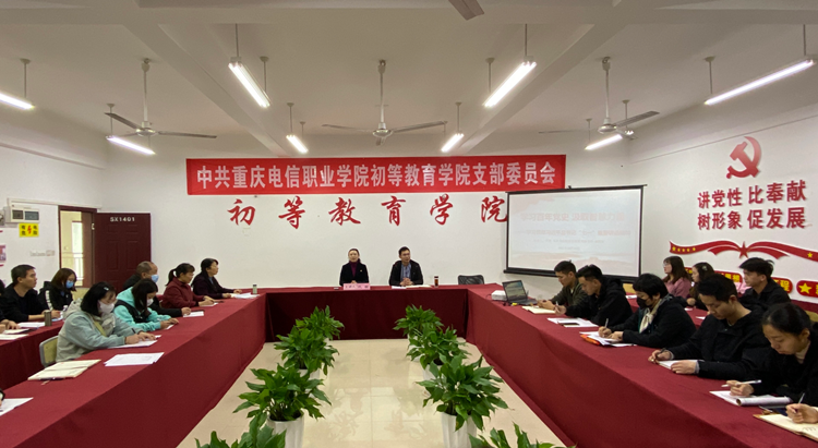 为深入学习贯彻习近平总书记在庆祝中国共产党成立100周年大会上的重要讲话精神,10月29日下午16:00,学 校党委副书记、副校长代敏到初等教育学院为学院全体教职工宣讲习近平总书记“七一”重要讲话精神。会议由初等教育学院党支部书记廖良刚主持。