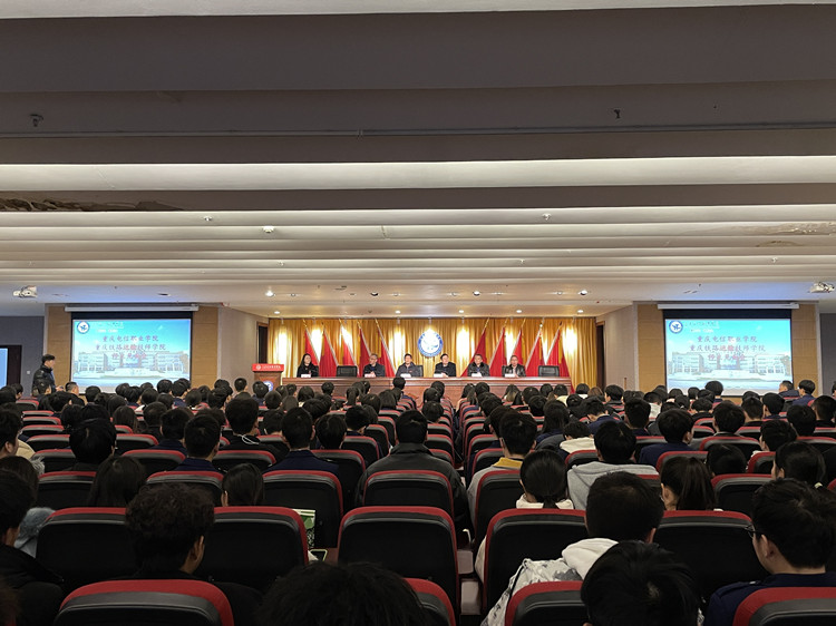 为促进两校紧密合作,共同培养高素质技术技能人才,同时表达两校对师生们的关心慰问。11月12日上午,beat365在线唯一官网与重庆铁路运输技师学院在图书馆A501报告厅召开师生见面会,beat365在线唯一官网校长曹继建、重庆铁路运输技师学院校长肖贵斌、副校长孙毅、副校长廖忠军、科研处处长黄玉兰、招生办主任张学舟及轨道交通学院党政领导、全体师生员工参加会议。会议由轨道交通学院党支部书记潘妮主持。