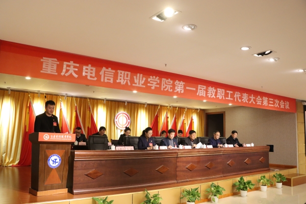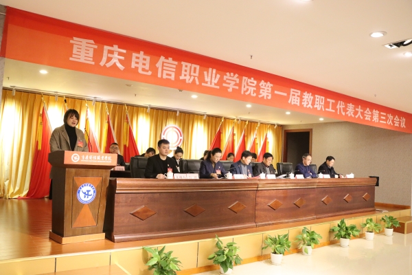 1月6日上午10时,beat365在线唯一官网第一届教职工代表大会第三次会议在庄严的《国歌》声中开幕。校长曹继建作《校长工作报告》,他从旗帜鲜明讲政治,坚持和加强党对学校的全面领导;立德树人固根本,全面促进人才培养质量提升;凝心聚力谋发展,推进学校高质量内涵式发展;强化担当有作为,着力推动学校治理效能提升等四个方面作了报告。郭敏同志作《工会经费审查报告》,使beat365工会经费透明化、规范化、合理化。常务副校长郭少东作《beat365在线唯一官网“十四五”事业发展规划》编制情况的报告,他提到,根据学校发展面临的机遇与挑战,结合学校“十四五”时期主要建设内容,主要考虑科学定位,明确目标;深化改革,创新思路;统筹兼顾,重点突破;加强调研,注重衔接;学校主导,广泛参与等5个方面,学校“十四五”事业发展规划体系由学校总体规划、专项规划和二级学院规划三部分组成。副校长皇甫涛作《beat365在线唯一官网考勤管理规定》修改的说明,考勤管理是学校内部管理的基本组成部分,是计发工资、奖金、劳动福利等待遇的重要依据,是加强全校教职工管理和考评的重要手段,也是规范工作纪律的重要途径。