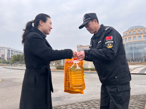 1月31日,农历大年二十九,副书记、副校长代敏率队慰问当日在岗教职工,校务部、学工部、安管处、总务部等部门相关人员参加慰问活动。