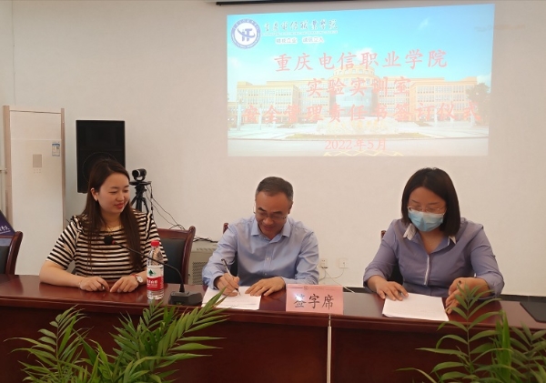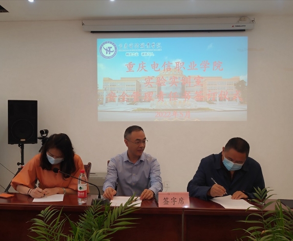 5月6日上午,学校2022年实验实训室安全管理责任书签订仪式在图书馆B501会议室举行。副校长皇甫涛代表学校与各二级学院党政领导签订实验室实训安全责任书。