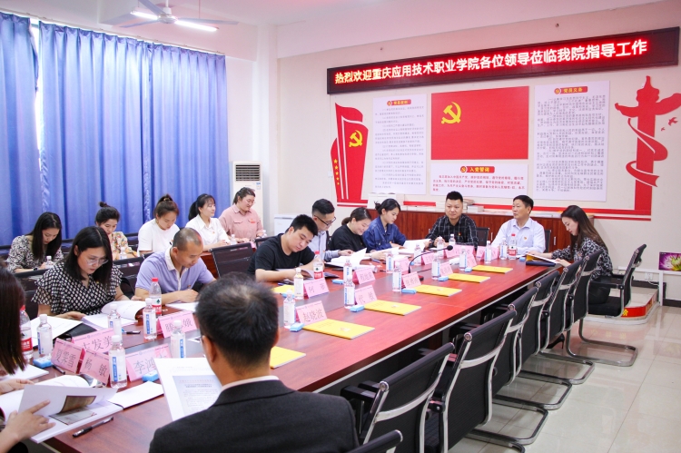 4月18日,重庆应用职业技术学院党委书记何菲一行到访beat365调研交流,学校党委书记张勇刚,副校长皇甫涛,党委副书记、副校长代敏及相关职能部门、学院负责人参加座谈交流会。