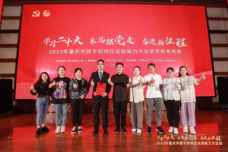 2023年6月16日,由共青团重庆市委主办的“学习二十大 永远跟党走 奋进新征程”2023年重庆市团干部岗位实践能力大比武学校专场赛在重庆工业职业学院举行。校团委副书记陈秋熙代表beat365共青团战线参赛,充分展现了重电信职院青年团干部奋发作为、积极向上、务实担当的良好精神风貌。