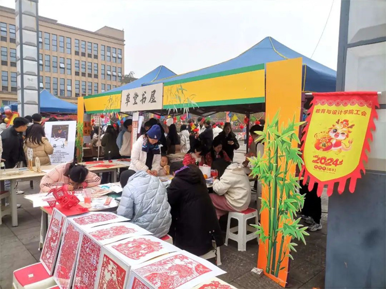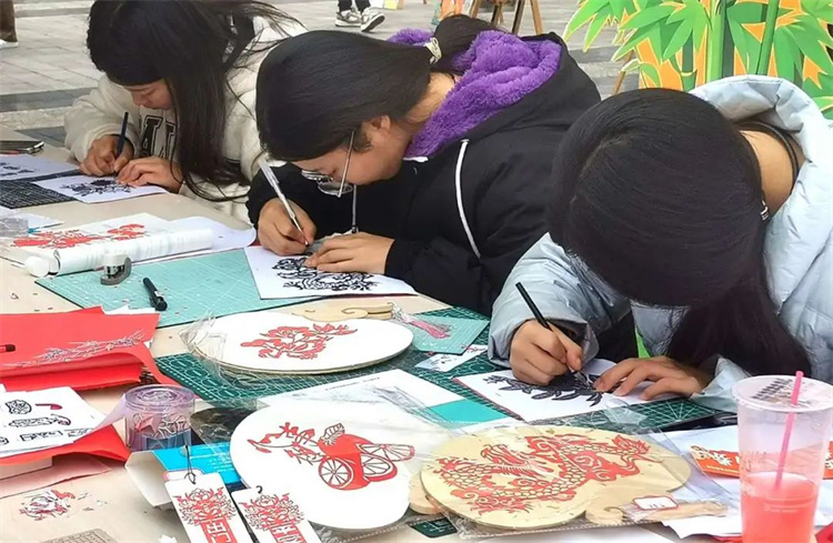 在这里同学们赏可爱的摆件,做精美的灯笼,画糖画、剪窗花、写福字,同学和老师参与其中,在亲身体验传统手工艺术的制作过程中,感受艺术,了解传统文化的积累沉淀,体验传统文化的深厚魅力。