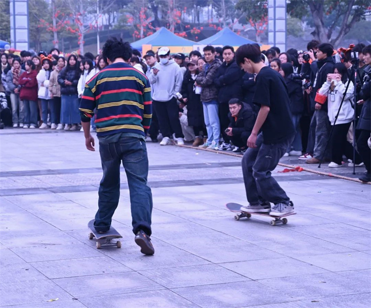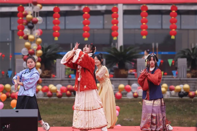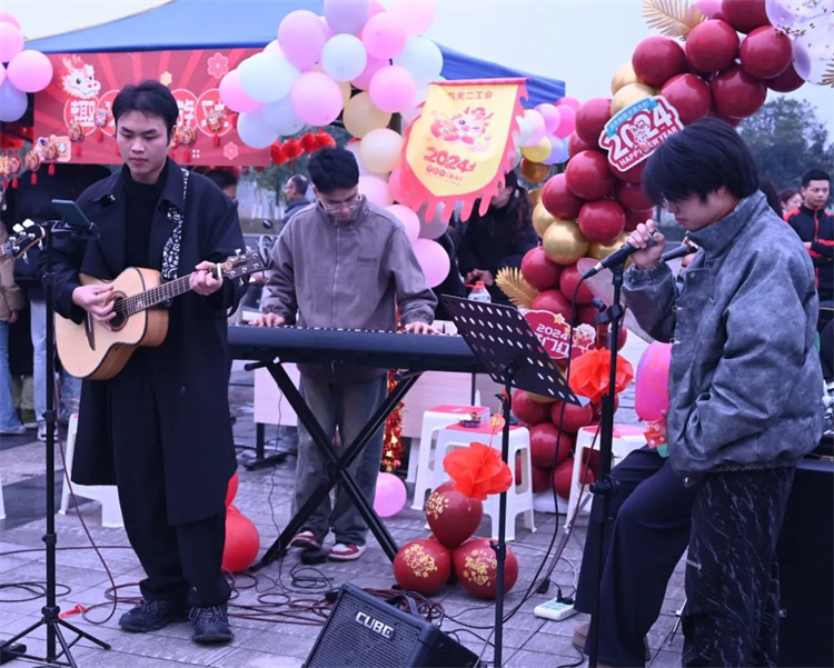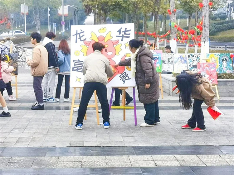 本次活动中在家校领导、全体中层干部、校企合作领导向全校师生进行了亲切的拜年,精城广场上洋溢着其乐融融,喜乐祥和的氛围。各个年味小摊上的欢声笑语,更是将本次迎新年游园活动推向高潮。