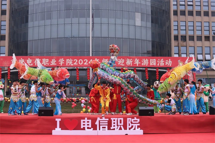 本次迎新年游园活动以《舞龙舞鱼》节目首先点燃活动现场, 在中国“龙”是汉族的图腾,“鱼”是祥瑞之兽,浓浓的迎新年氛围弥漫全场。本次师生迎新年游园活动延续学校传统,将迎新年庆典场地从室内移至室外,扩大全校师生参与度与覆盖面,增加活动的趣味性、文艺性、运动性。本次活动元素以喜庆、热闹、轻松、有趣为主线,营造积极向上、喜乐祥和的新年氛围。