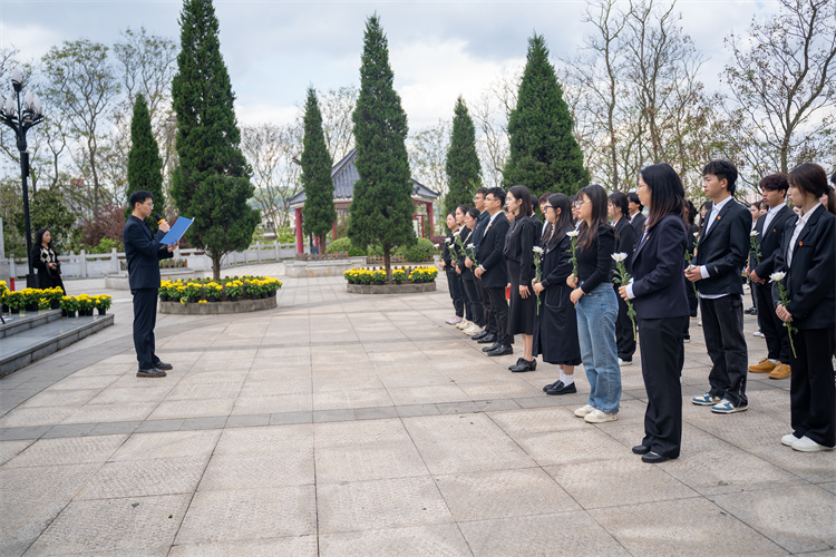 在庄严肃穆的烈士纪念碑前,大家列队肃立。致悼词、全体默哀、敬献花篮、整理缎带、主题党课、学生代表发言、重温入团誓词、祭扫烈士墓、参观大足区革命历史陈列馆,全体代表通过这样方式追忆革命历程,缅怀革命先烈。