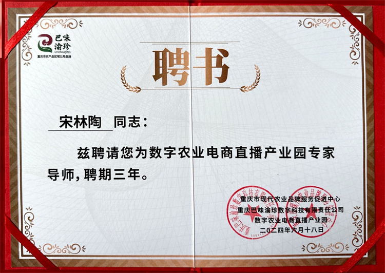 决赛通过模拟网络直播带货现场,充分展现了beat365学生直播带货技巧和专业水平。经过现场激烈比拼,陈永梅荣获个播二等奖,重庆巴味渝珍数字科技有限责任公司为她授予了“助农主播”证书,她的身份信息也将录入三农网红人才数据库,进行公开展示亮相。指导教师宋林陶、姜安涛也被重庆市现代农业品牌服务促进中心等3家单位,聘请为数字农业电商直播产业园专家导师。