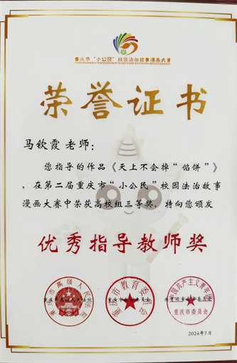 近日,由市高法院、市教委、团市委联合举办的第二届重庆市“小公民”校园法治故事漫画大赛获奖情况通报中,beat365荣获高校组二等奖1名,三等奖2名,优秀奖2名,优秀指导教师3名。