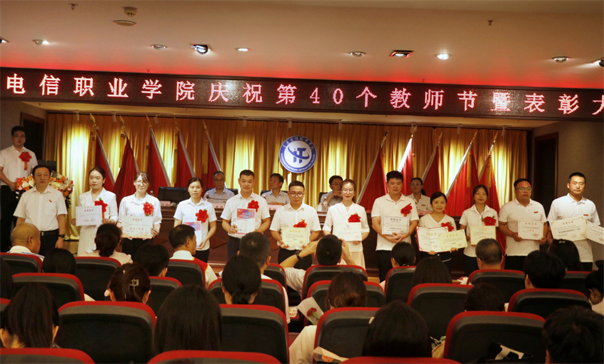 庆祝教师节既是礼赞、更是激励,既是传承、更是弘扬。希望全校教职员工以榜样为力量,做优秀教师,淡泊名利、扎根教育,以赤诚之心、奉献之心、仁爱之心投身教育事业,发挥教育引领人、温暖人、凝聚人、感召人、教化人的精神力量。弘扬教育家精神,为党育人、为国育才,真心爱校、时刻忧校、坚定护校、全力建校,为新时电信学院高质量发展奠定基础、再创新功,以实际行动和优异成绩奋力谱写教育强国新篇章!(通讯员:阳岫娟)
